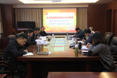 11月2日下午,中国科学院昆明分院分党组召开中心组学习扩大会议,深入学习贯彻党的十九大精神,会议由分党组书记周杰主持,分党组成员、机关党委成员、各部门负责人参加学习。