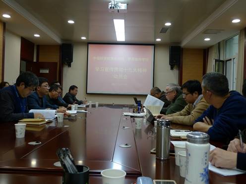 杨星科在布置学习宣传贯彻十九大精神工作时强调,分省院各级党组织要认落实党中央、中科院党组和陕西省委的要求,扎实开展各项工作,分省院党组和各单位党委要制定学习宣传贯彻十九大精神方案,各单位党委要指导支部制定计划。分省院党组重点组织分省院、研究所领导班子成员以及支部委员的学习和培训,各单位党委则面向全体党员和职工开展学习研讨,特别要注意研究生党员和离退休党员群体,全面覆盖、上下联动,真正做到“党员干部带头学、带头讲、带头干,职工群众听得懂、能领会、可落实”。