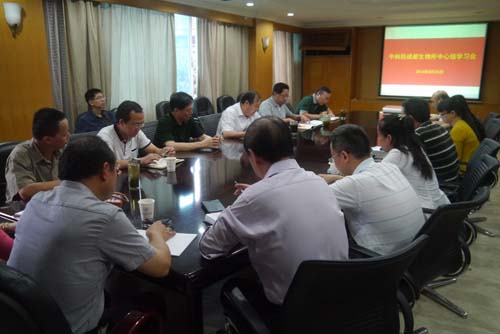 8月26日,中国科学院成都生物研究所党委召开了2014年第3次中心组学习会。学习会以“学习贯彻《中国科学院“率先行动”计划暨全面深化改革纲要》,统一认识,增强责任意识,全面深入推进研究所改革发展”为主题,进行了深入学习和研讨。会议由党委书记叶彦主持,所领导班子成员、党委委员、纪委委员、副处级以上干部、支部负责人参加了学习。