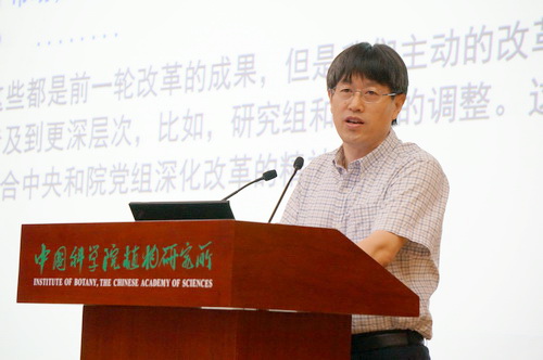 方精云作题为《植物所落实“率先行动”计划暨深化改革方案的思考》的报告