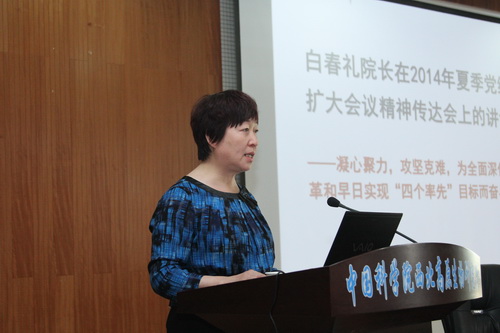 王萍传达《白春礼院长在2014年夏季党组扩大会议精神传达会上的讲话》主要精神