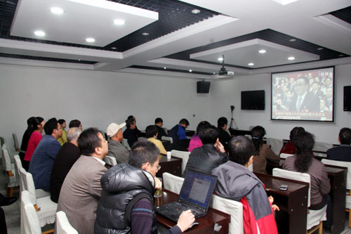 11月8日上午9时,中国共产党第十八次全国代表大会在人民大会堂隆重召开。中国科学院兰州分院组织院属各研究所和机关人员收看了大会开幕式直播。分院机关全体职工、离退休人员代表50余人在301会议室认真聆听学习胡锦涛总书记在开幕式上作的题为《坚定不移沿着中国特色社会主义道路前进为全面建成小康社会而奋斗》的报告。