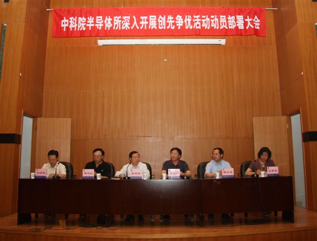 李树深宣读了《半导体所深入开展创先争优活动实施方案》。《实施方案》从重要意义、指导原则、总体目标、主要内容及重点主题、活动载体及具体要求、组织领导六个方面对半导体所深入开展创先争优活动进行了具体的、全面的部署。半导体所创先争优活动强化实践载体,以“三学三比三争创”为载体,结合三大主题活动:一、以“学党的理论、学创新本领、学先进典型”为主题的教育活动;二、以“学先进、争先进、做先进”为主题的评优活动;三、以“争创坚强堡垒、争创一流成果、争创和谐氛围”为主题的培训交流活动。还加强组织领导,成立了“半导体所创先争优活动办公室”,负责创先争优各项工作的具体组织和实施。