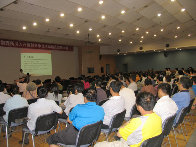 5月27日下午,中科院物理研究所召开深入开展创先争优活动动员部署大会,党委书记孙牧作动员报告并进行具体部署,全所在职职工党员、研究生党员参加会议。
