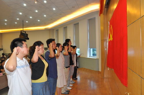 在鲜红党旗的映衬下,多功能厅熠熠生辉,台内100多名党员庄严落座。郑晓年首先宣读了《关于表彰京区先进基层党组织、优秀共产党员和优秀党务工作者的决定》,国家天文台兴隆/LAMOST党支部、郜双喜同志和李春来同志榜上有名。随后宣读了《中共国家天文台委员会关于表彰2008—2009年度先进党支部和优秀共产党员的决定》,评选太阳党支部、恒星/星系党支部和退休四党支部为国家天文台2008—2009年度先进党支部;评选王华宁等9位同志为国家天文台2008—2009年度优秀共产党员。刘晓群号召各党支部和全体共产党员向受到表彰的先进党支部和优秀共产党员学习,以实际行动促进创先争优取得实效,为顺利启动和实施“创新2020”提供可靠保证。随后,预备党员面对党旗庄严宣誓。