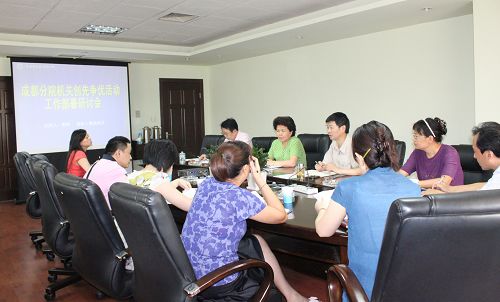 为了进一步贯彻落实中科院成都分院党组深入开展创先争优活动实施方案,7月22日下午成都分院机关召开创先争优工作部署研讨会。成都分院党组副书记、创先争优活动领导小组副组长彭丽玲、机关第一、二、三及后勤公司党支部书记、支部委员参加了会议。会议由分院组织人事处处长熊鸣主持。
