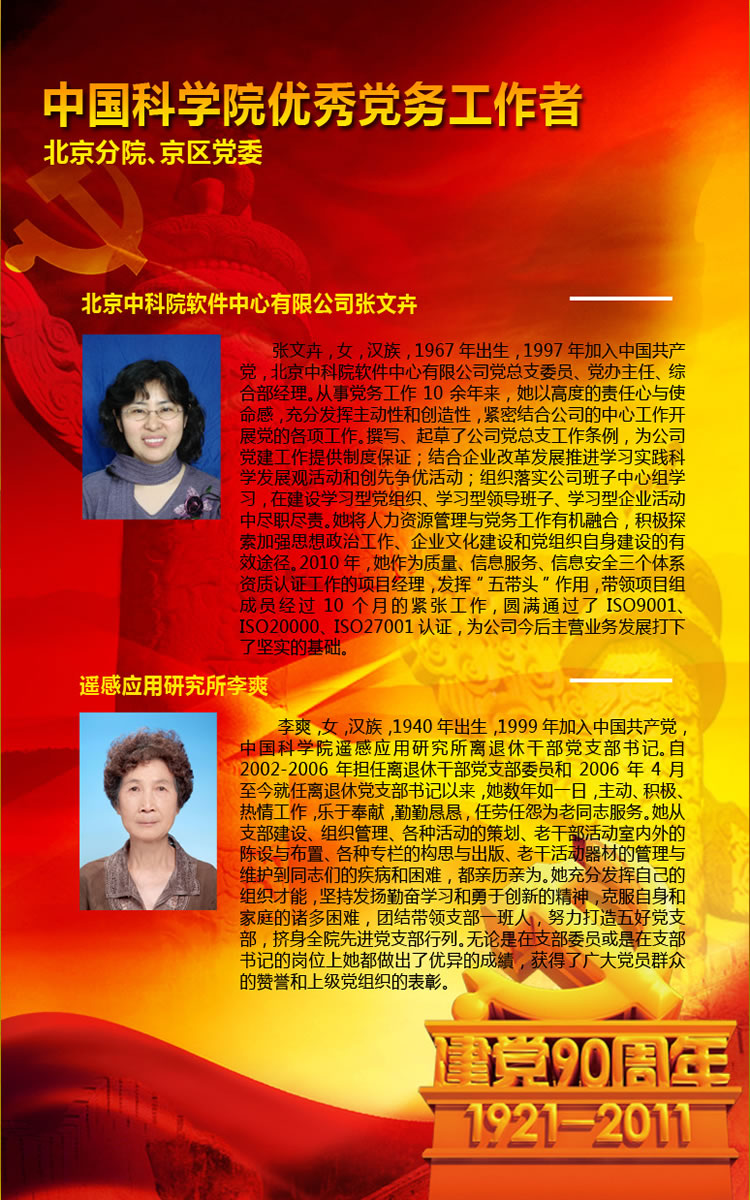 中国科学院优秀党务工作者事迹展
