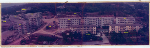当时施工用水是从低洼处挖井,经水泵抽提的,过一段时间就得有人下井清理泥污,否则就抽不上水,在抽出的水里,经常能看到游动的红色小虫,这样的水既不符合实验要求,更加不符合饮用水标准。当时,自来水公司提出花20万元,从黄埔大道接自来水管到研究所的方案,中科院立即下拨专项用款,但由于研究所地势较高,高出水管水平高度30余米,自来水难以输送到宿舍楼和实验楼内,为解决该问题,两项工程随即施工:一是于现在的科研综合楼下挖建储水池(照片2);二是于现在的半山雍景苑上建水塔(照片3)。经过几个月的奋战,研究所的人终于用上了干净的自来水。