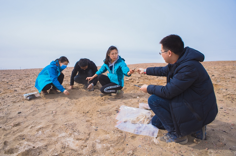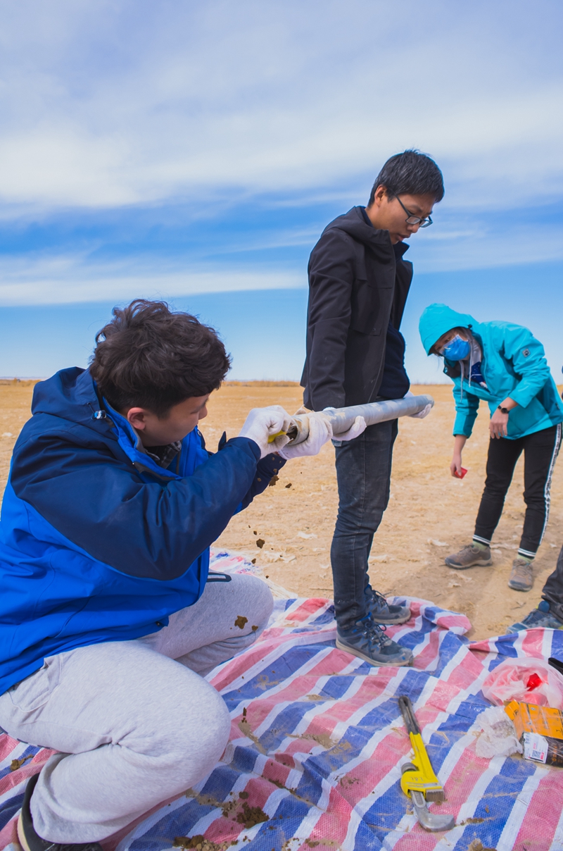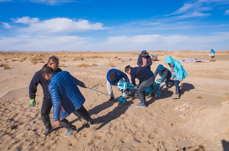 2019年3月至4月,古脊椎所李小强课题组成员前往巴丹吉林沙漠西部地区,对当地多个考古遗址进行了重新考察,并使用岩芯钻机在遗址周边采集样品,为进一步研究该地区全新世环境变化与人类活动收集材料。