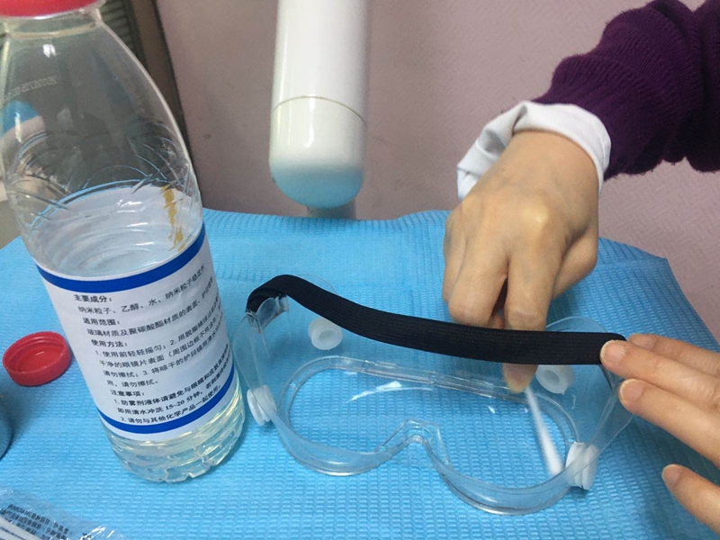 助力一线。医务人员收到防雾剂,配戴前在护目镜表面涂防雾剂