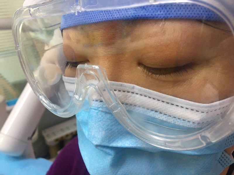 来之能战。涂好防雾剂的护目镜无雾气产生,医务人员可高效开展救治工作