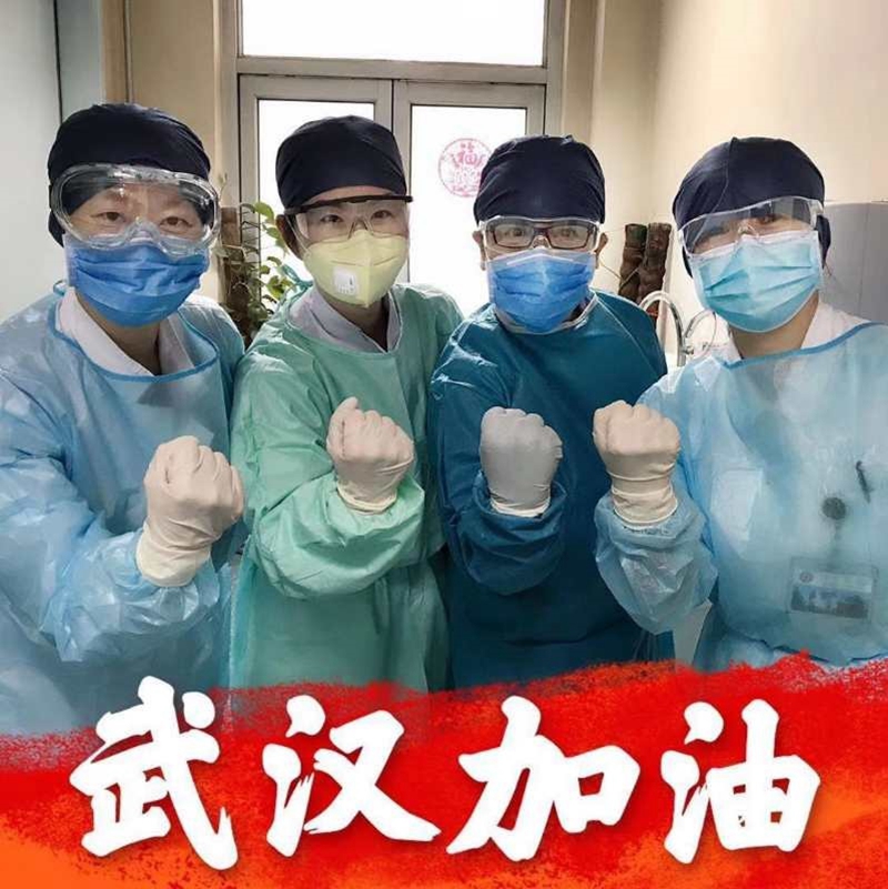 战之能胜。使用护目镜防雾剂后的北京医院医务人员为武汉医务人员加油鼓劲