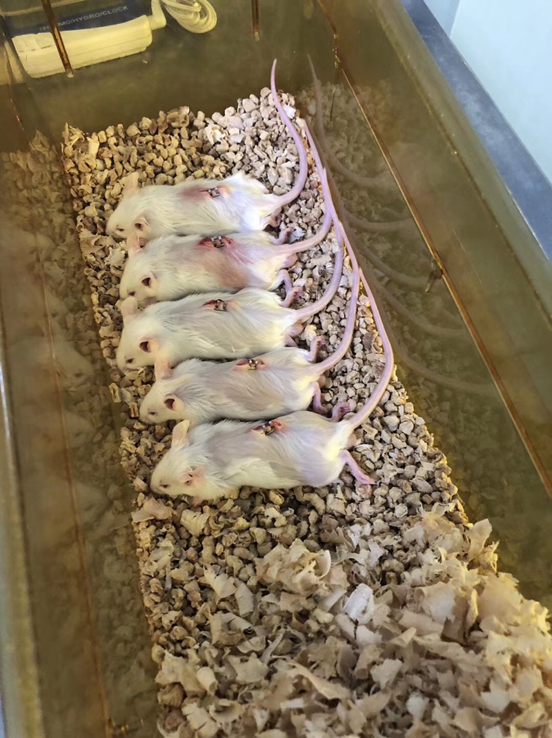 移植完成。完成种子细胞移植的小鼠按照植入细胞做好标注,按顺序放回干净的鼠笼