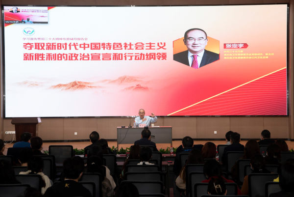 会上,张定宇作了题为《夺取新时代中国特色社会主义新胜利的政治宣言和行动纲领》的专题报告,从党的二十大、党的二十大精神、“五个牢牢把握”的重要要求以及贯彻落实党的二十大关于卫生健康事业的战略部署四个方面对党的二十大精神全面宣讲。张定宇提到,要深刻领悟“两个确立”的决定性意义,不断增强“四个意识”,坚定“四个自信”,做到“两个维护”。习近平新时代中国特色社会主义思想开辟了马克思主义中国化时代化新境界,必须长期坚持并不断丰富发展。张定宇表示,党的二十大高度重视卫生健康事业的发展。我们要坚持以习近平总书记关于卫生健康工作的系列重要论述为引领,精准对接人民群众重视生命质量和生命健康安全的总需求和新期望,在建设全国构建新发展格局先行区中扛起责任,扎实推进健康湖北建设。团结才能胜利,奋斗的人生才是幸福的人生。希望武汉病毒所广大青年在工作和学习中,勤于思考、勇于攻坚克难,做出无愧于美好新时代的业绩。希望武汉病毒所面向人民生命健康,继续团结奋斗,勇毅前行,再创佳绩。