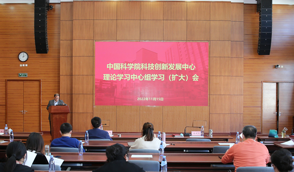 11月15日下午,中国科学院科技创新发展中心召开2022年第8次理论学习中心组专题学习(扩大)会议,专题学习党的二十大精神,传达中科院关于加强基础研究的工作部署。