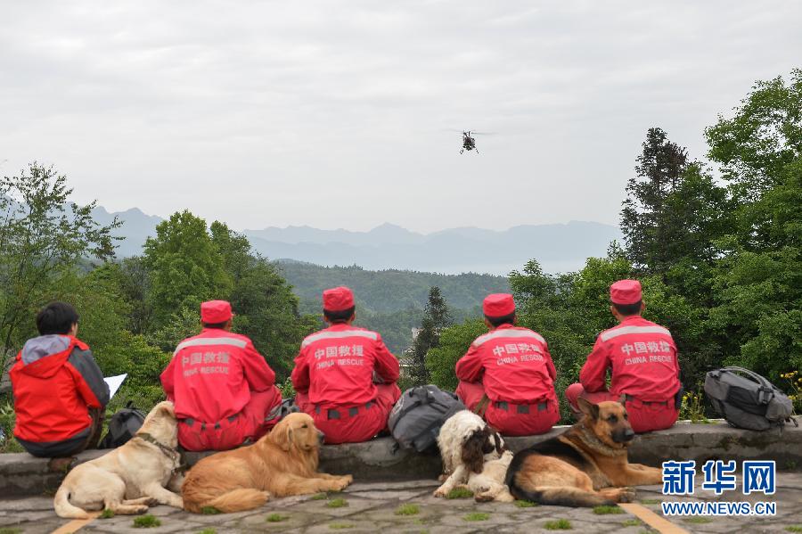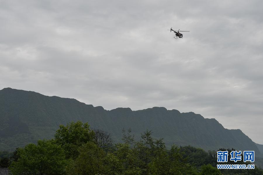 4月24日,无人机升空准备对雅安雨城区碧峰峡镇受灾区域进行空中排查。