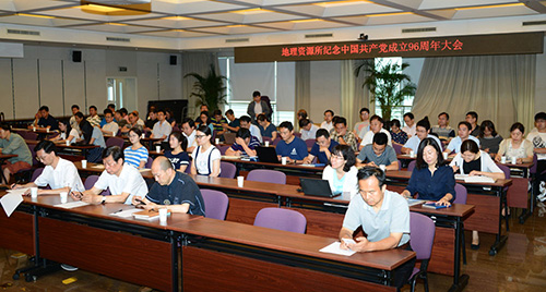 7月4日上午,中国科学院地理科学与资源研究所举行纪念建党96周年“信念引领科研 党建促进创新”主题科研报告会。所领导班子成员、所党委委员、纪委委员、各党支部书记和支部委员、各实验室(中心、站)及研究室负责人、管理和支撑部门负责人等近百余人参会。