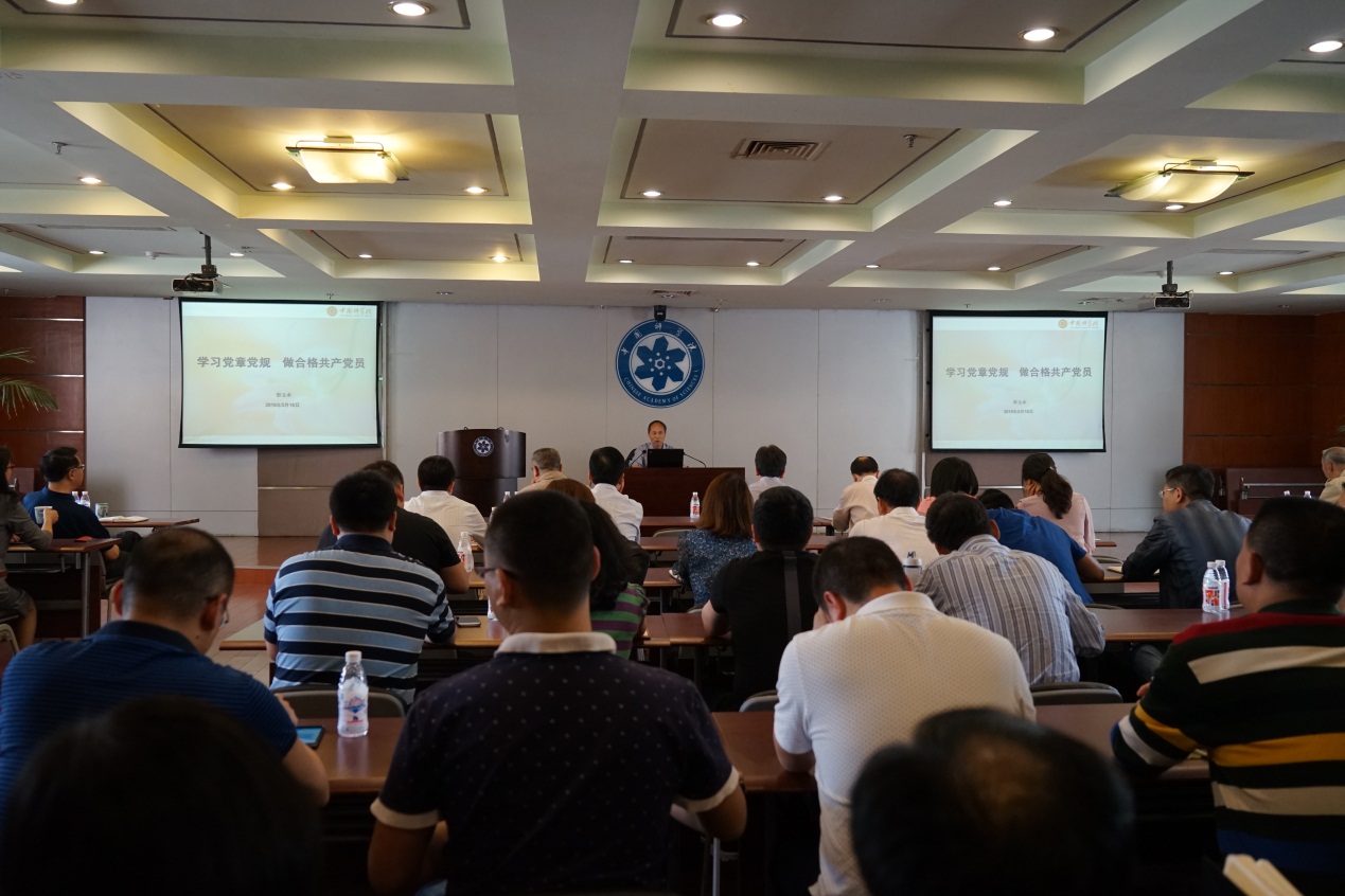 会上,成都分院宣讲团成员彭玉水作《学习党章党规 做合格共产党员》专题报告。报告从党章党规的历史背景、层次功能、主要内涵以及全面深入学习党章党规的重要性、必要性和紧迫性等作了详细阐述,并针对科研院所如何做合格共产党员进行了详细讲解。报告深入浅出、引经据典,党建理论与典型案例有机结合,深刻阐述了学习、遵守、贯彻、维护党章党规的重大意义。报告中,彭玉水为大家重点解读了《中国共产党章程》、《中国共产党廉洁自律准则》、《中国共产党纪律处分条例》等党章党规的主要内容和修订要义,要求大家做“坚持以知促行,做讲政治、有信念,讲规矩、有纪律,讲道德、有品行,讲奉献、有作为”的合格共产党员。报告思想深刻、内涵丰富、事例鲜活、语言生动,既有系统的概括理解,也有从历史和现实角度进行的深入思考,具有很强的理论性、针对性和指导性,对于推动 “两学一做”学习教育深入扎实开展,具有重要的指导意义。