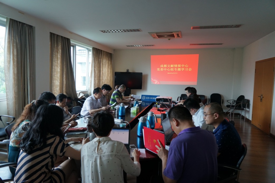 6月27日,中国科学院成都文献情报中心召开党委中心组“两学一做”专题学习会,推进“两学一做”第二、三阶段的学习教育,学习党内重要法规,学习贯彻全国科技创新大会精神,深入研讨中心“十三五”发展规划纲要的推进落实。中心领导班子成员、中层干部、党支部书记参加本次学习会。会议由党委书记曾文华主持。