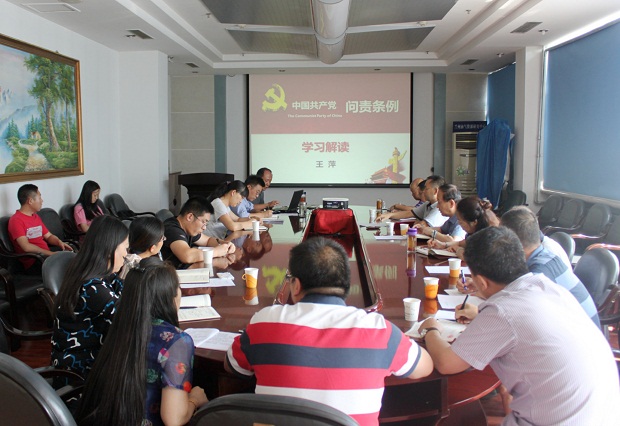 会议传达了中科院党组关于认真学习贯彻《中国共产党问责条例》(以下简称《问责条例》)的通知精神,按照中科院关于在“两学一做”第三专题学习中重点学习贯彻《问责条例》的要求,做了《问责条例学习解读》专题报告。报告结合实际案例,从背景介绍、制定过程、五大亮点、解读说明、具体内容五个方面对《问责条例》进行了详细解读,以党课形式对各党支部学习贯彻《问责条例》进行了集中培训。