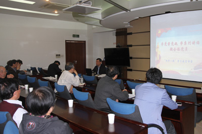 随后,蔡立根据专题一“学党章,坚定理想信念”的学习要求做了重点发言,对党章的基本知识和十八大修订的新党章进行了深入的解读,并就怎样学好党章提出了要求。蔡立指出,党章是党内最基本和最高的政治行为规范,是为实现党的纲领所制定的根本法规,是党的各级组织和全体党员必须严格遵守的基本准则和规定。蔡立表示,十八大通过的新党章虽然只有一万七千多字,但内涵十分丰富深刻,为实现“五位一体”战略布局奠定了基础保证。蔡立强调,学习党章重在经常认真、知行合一、坚决执行,学习党章贵在树立党章意识、党员意识、党的意识,只有坚持认真学、经常学、反复学,逐字逐句通读原文,全面系统地领会掌握党章的内涵要义,才能找出自己存在的不足和差距,不断地改进提高,做到内化于心、外化于形,做一名合格的共产党员,积极向优秀共产党员的目标靠拢,发挥好党员的模范带头作用,切实做到“创新科技、服务国家、造福人民”。