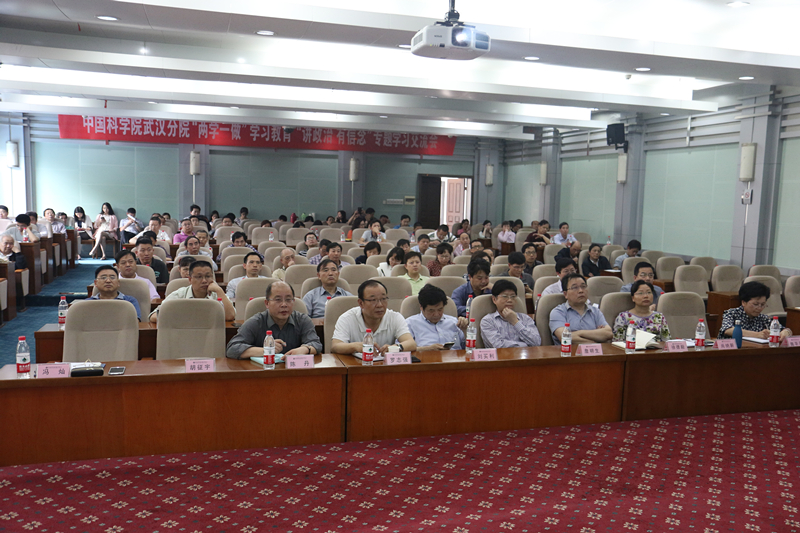 5月24日,中国科学院武汉分院直属单位党委召开“两学一做”学习教育“讲政治、有信念”专题学习交流会。武汉分院分党组书记、副院长陈平平,分党组副书记、纪检组组长尚纳新,以及院属在汉各单位领导班子成员、职能部门负责人、党支部书记130多人参加了会议。会议由陈平平主持。
