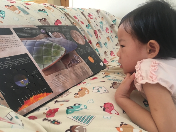 自年初寒假始,孩子在家室内活动占据了一天的大部分时间。家里空间有限,最适合的活动莫过于读书了。习主席2014年2月在俄罗斯索契接受俄罗斯电视台专访时提到,“读书可以让人保持思想活力,让人得到智慧启发,让人滋养浩然之气”。对于3岁多的孩子来说,他们对外部语言知识呈现出强烈的渴求,阅读在很大程度上满足他们对语言知识的需求,此时开展阅读会让他们的语言成长更为迅速。阅读不仅仅促进幼儿的语言发展,而且还能在很大程度上促进幼儿心理的发展,让幼儿通过语言的感知和内心的想象来获取更多的生活阅历。