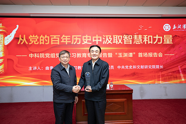 4月23日下午,中国科学院党组党史学习教育专题报告暨“玉渊谭”首场报告会在京举行。中科院院长、党组书记,中科院党史学习教育领导小组组长侯建国主持报告会。党史学习教育中央宣讲团成员、中央党史和文献研究院院长曲青山作专题报告。