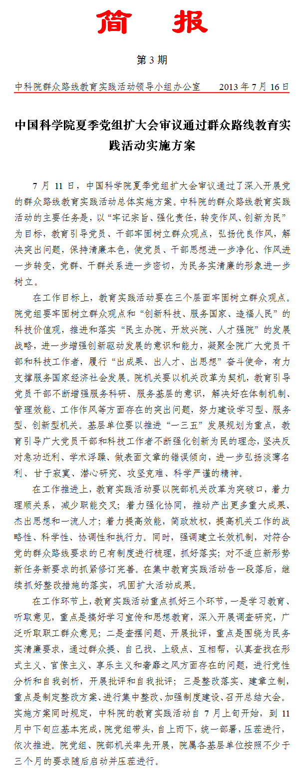 第3期:中国科学院夏季党组扩大会审议通过群众路线教育实践