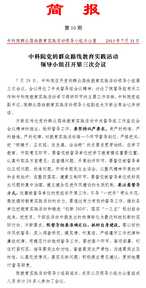 第10期:中科院党的群众路线教育实践活动领导小组召开