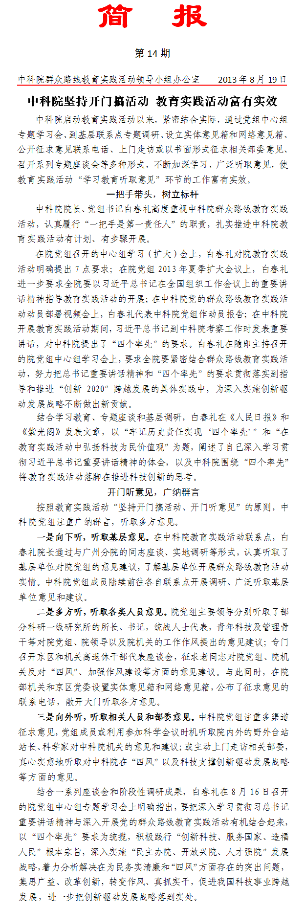 第14期:中科院坚持开门搞活动 教育实践活动富有实效