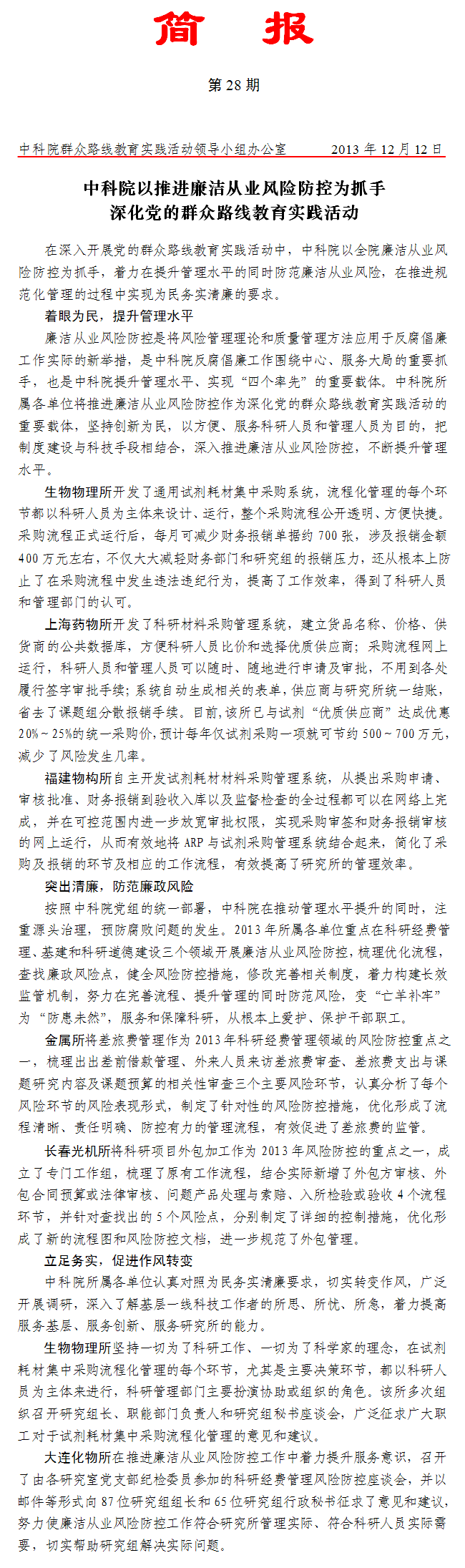 第28期:中科院以推进廉洁从业风险防控为抓手深化党的群众路线教育实践活动