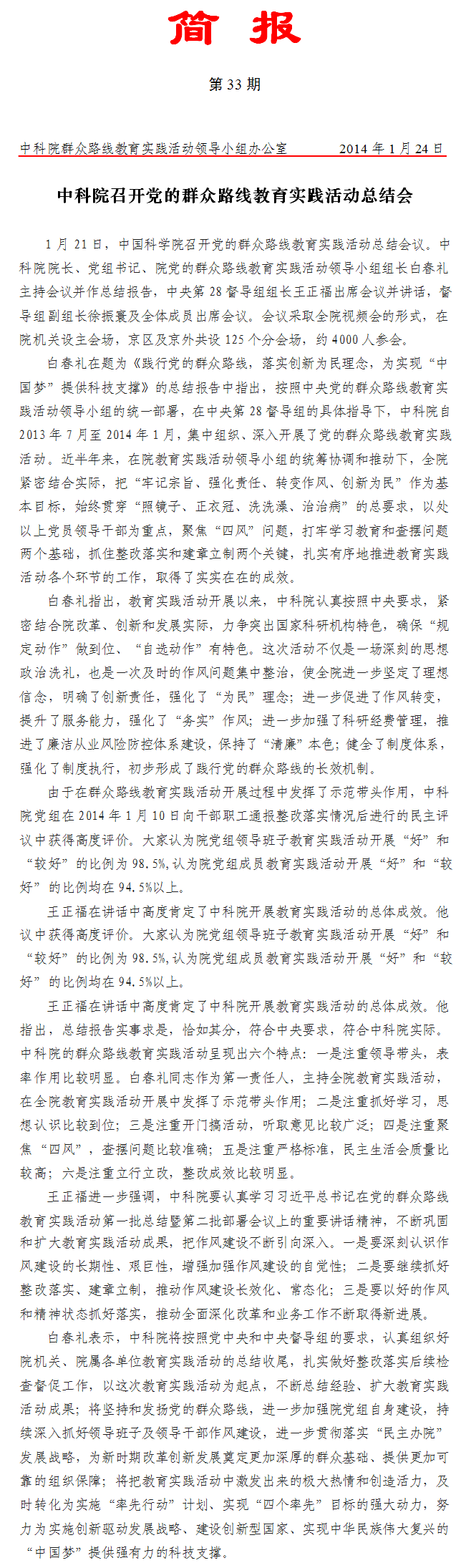 第33期:中科院召开党的群众路线教育实践活动总结会