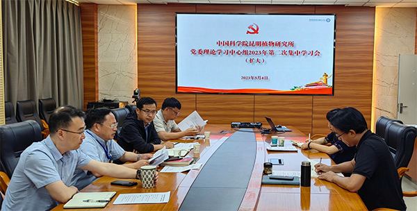 5月4日,中国科学院昆明植物研究所党委理论学习中心组举行2023年度第二次集中学习会(扩大),深入推进学习贯彻习近平新时代中国特色社会主义思想主题教育。