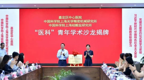 会上,与会同志观看了上海光机所、上海硅酸盐所与嘉定区中心医院的宣传片,了解了三家单位的发展历程和党建特色。嘉定区中心医院党委书记谢岳林分别与上海硅酸盐所党委书记、副所长(主持工作)王东和上海光机所党委书记邵建达,签署新一轮党建共建战略合作协议。嘉定区科协主席万刚等为“医科”青年学术沙龙揭牌。此外,嘉定区中心医院放射影像科主任梁凯轶、上海硅酸盐所研究员胡萍、上海光机所研究员何飞分别作了学术报告,为首期“医科”青年学术交流会拉开了序幕。