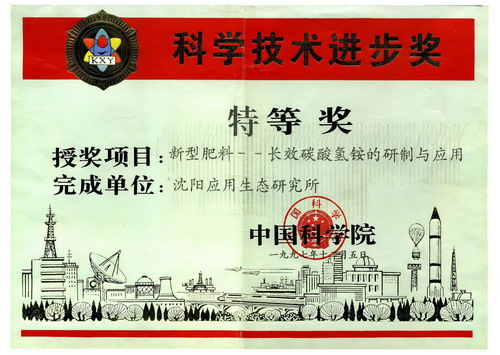 新型肥料--长效碳酸氢铵的研制与应用(中科院特等奖)  长效碳铵推广示范 |