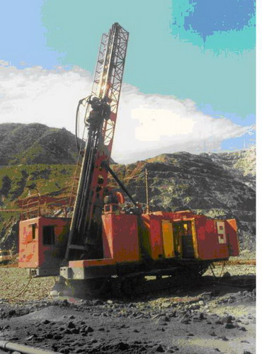 2003年在攀技花兰尖铁矿的潜孔钻机正在进行凿岩工作