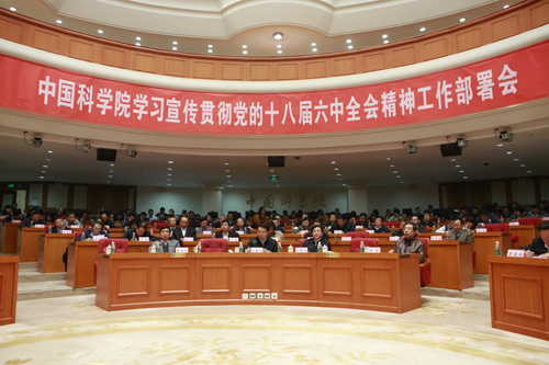 中科院党组高度重视党的十八届六中全会精神的学习宣传贯彻工作,六中全会闭幕后及时召开领导干部大会,传达六中全会精神。11月2日,院党组贯彻中办通知要求,印发了《关于认真学习宣传贯彻党的十八届六中全会精神的通知》,要求全院要以高度的政治责任感和使命感,认真组织好六中全会精神的学习宣传贯彻。此次召开全院部署会,是对全院各级党组织学习宣传贯彻六中全会精神进行集中动员和统一部署。