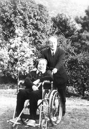 徐光宪和高小霞在未名湖边散步。